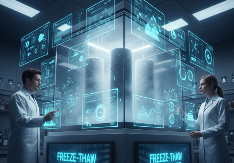 Testing paving and concrete components for resistance to winter cracking and spalling.